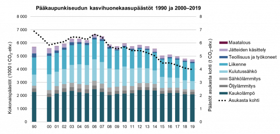 Pääkaupunkiseudun kasvihuonekaasupäästöt pysyivät lähes ennallaan vuonna 2019